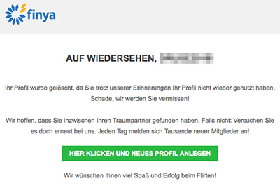 Ich wurde in den letzten Wochen. Bei Beachtung dieser Anleitung. März Man muss sich einfach darauf einstellen, dass finya account deaktivieren einige komische Leute gibt und die Partner etwas länger.